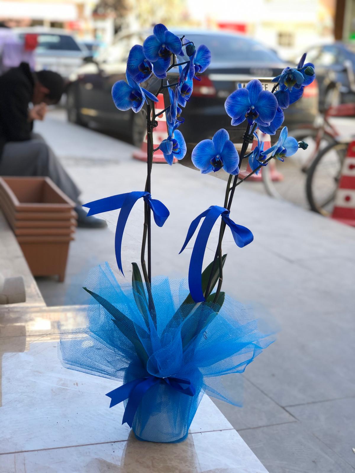 Mavi orkide seramik vazo eşssiz güzelliği